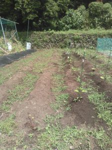 雑草を抜いて、耕して、ウネを作りました
